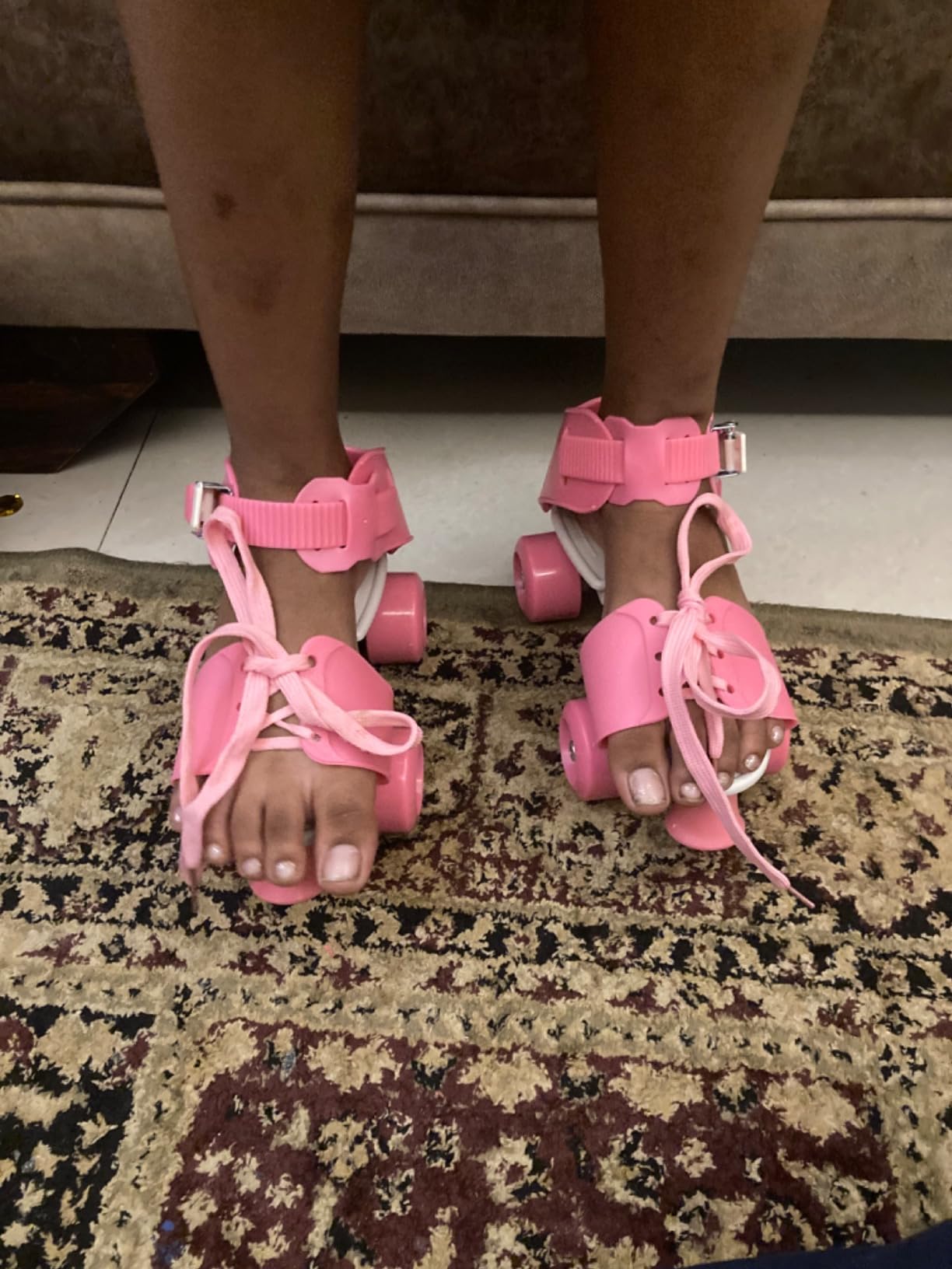 My daughter wanted to try the skates, so bought these. Very strong and sturdy material makes it safe for kids. Daughter is enjoying practising on these. Thank you for such product at affordable price.